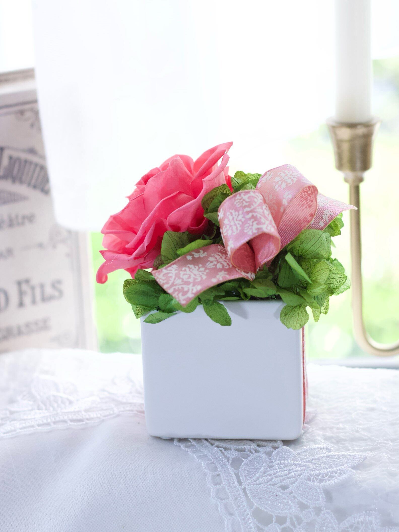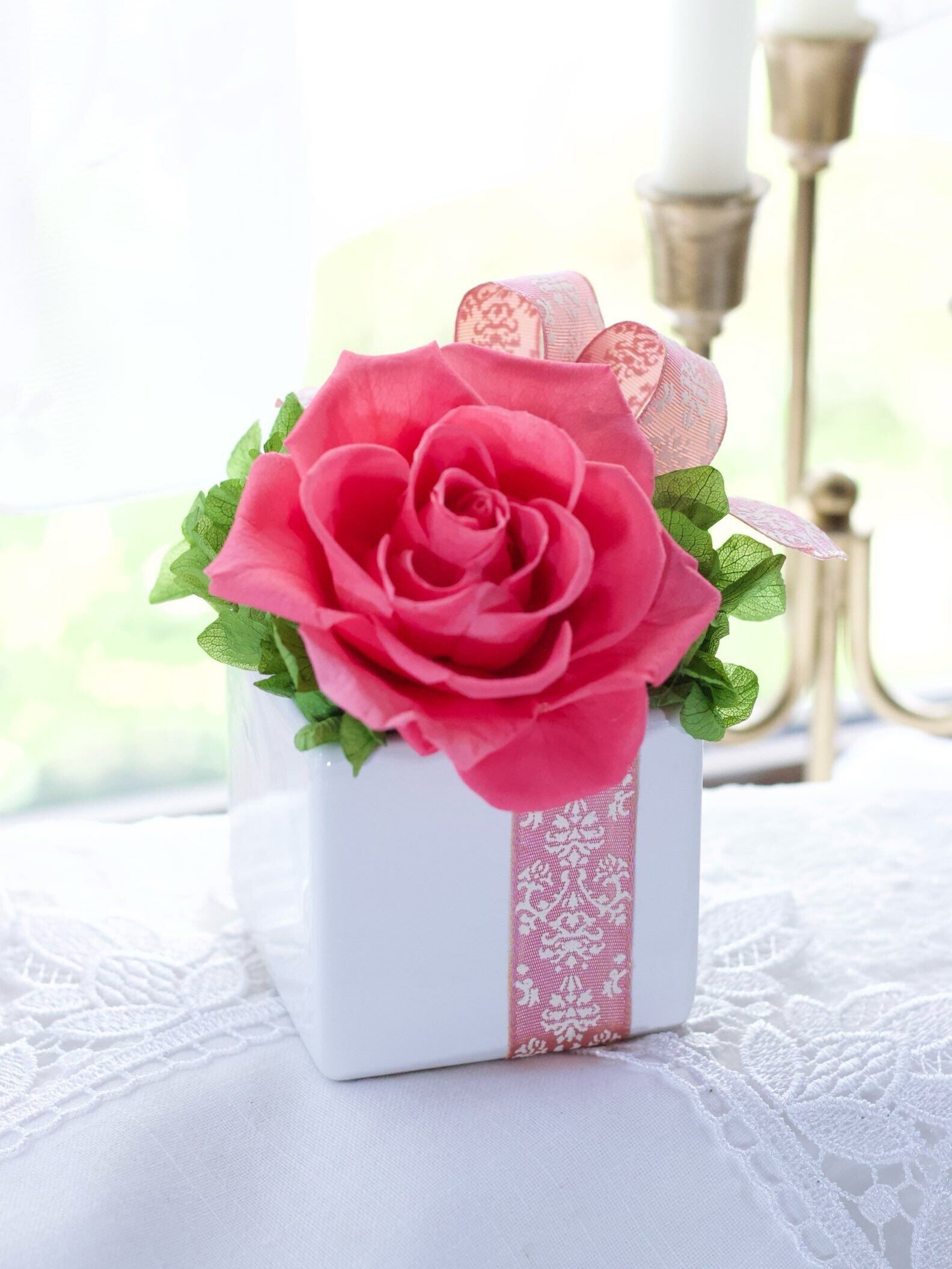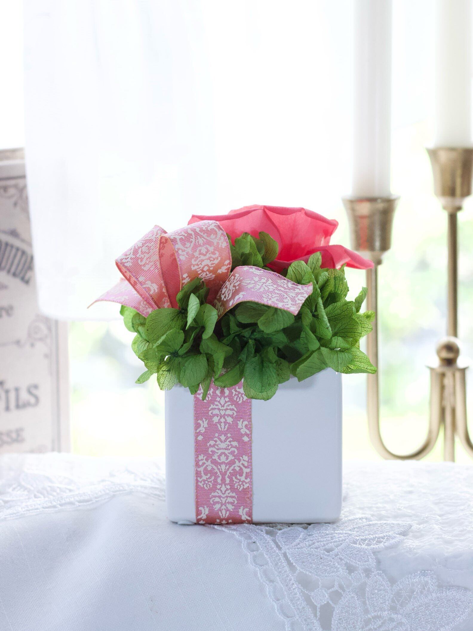 プリザーブドフラワーですのでお水換えの必要が無く、枯れることもありませんので、