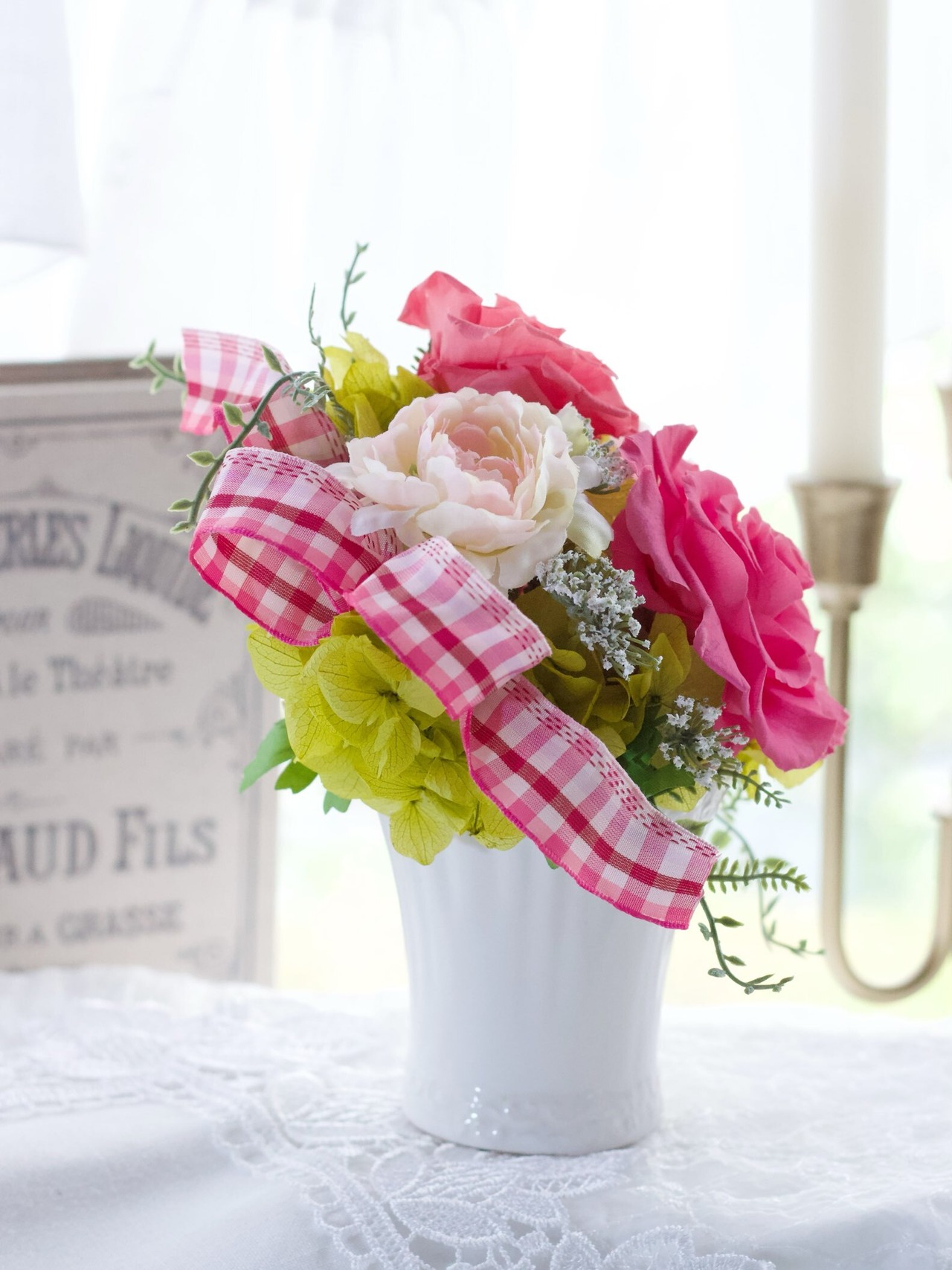アーティフィシャルフラワーのラナンキュラス、レースフラワー